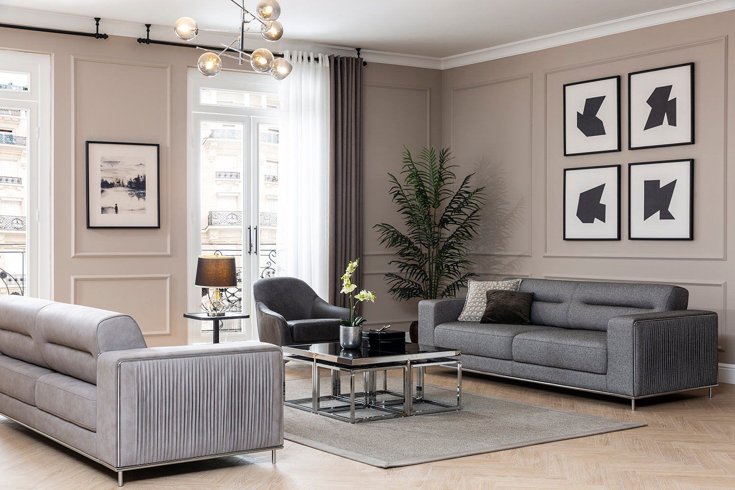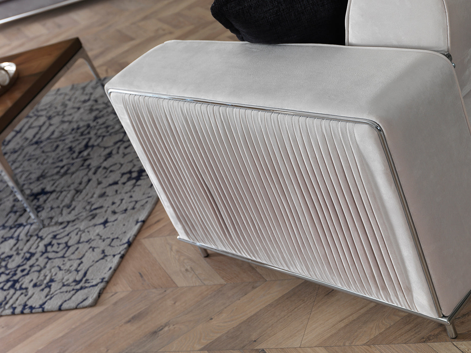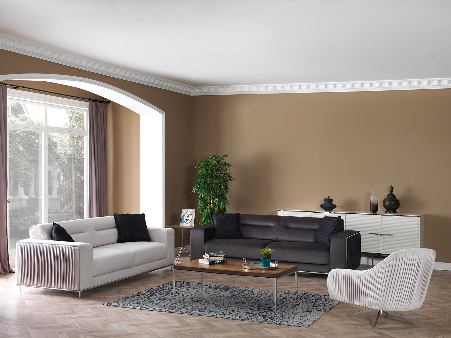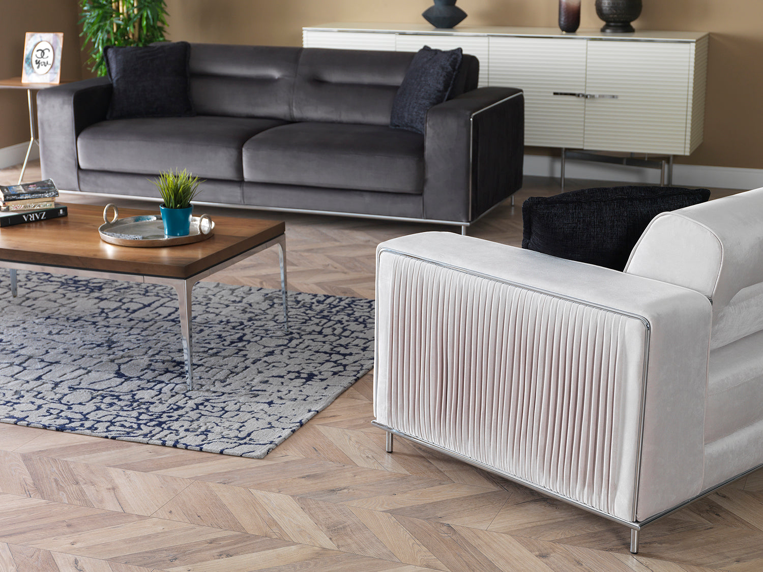 Escaze; A seating group made with pure metal body with lush velvet fabric and uphostered with the most comofortable reflex foam that reminds you of heaven right in your living room.