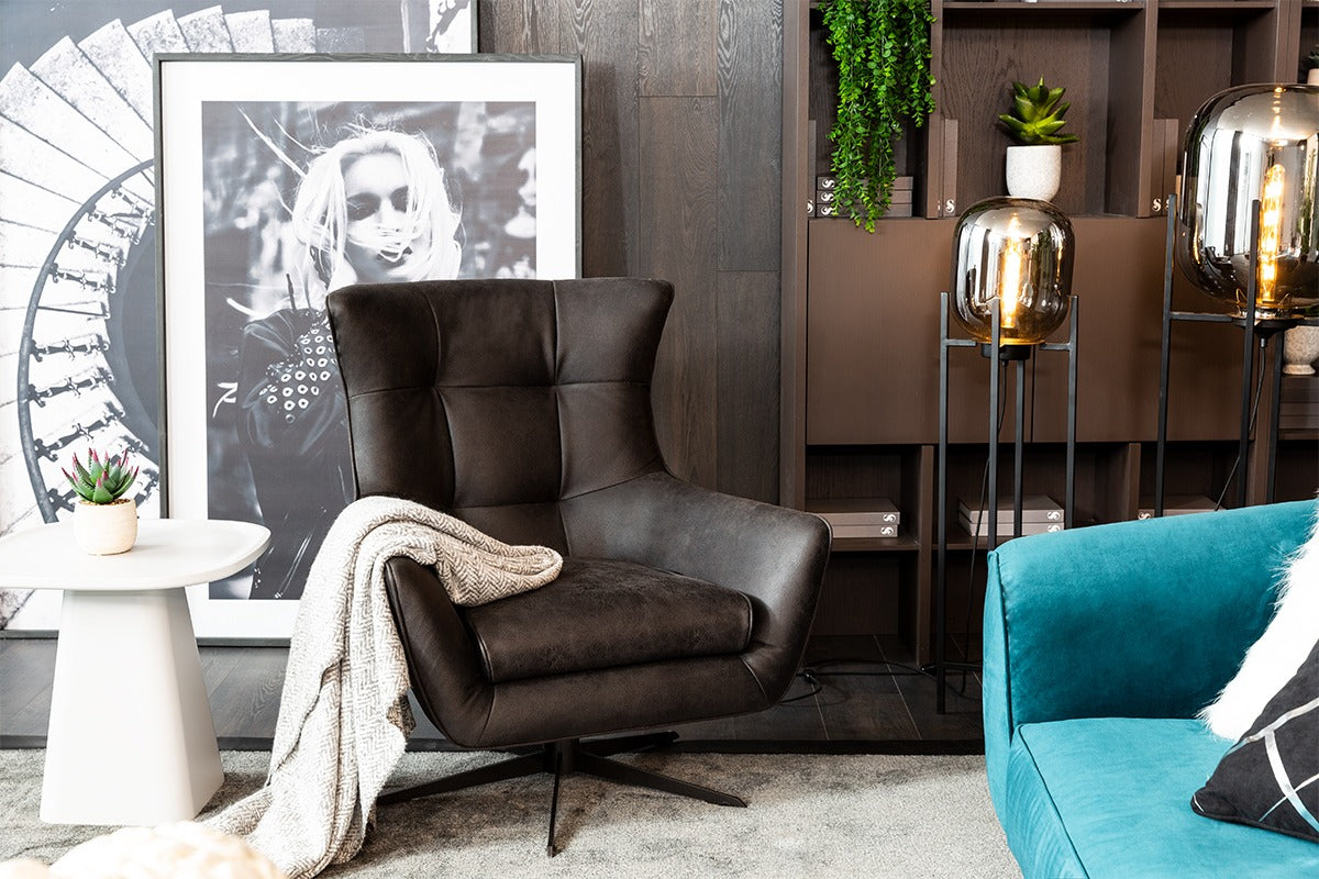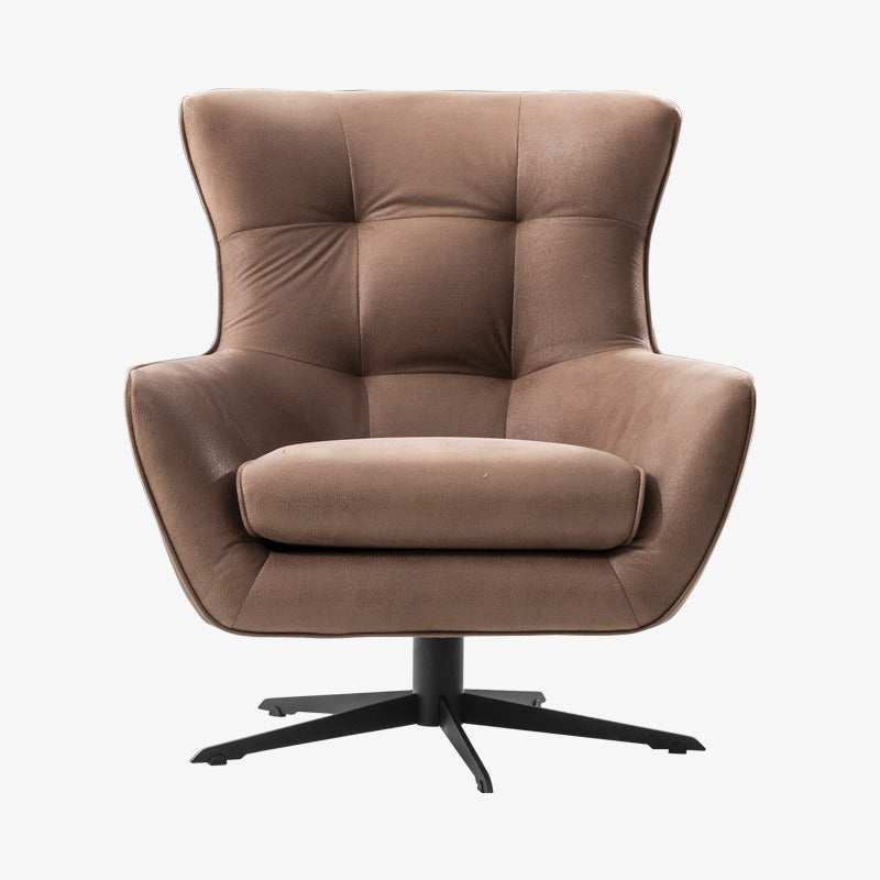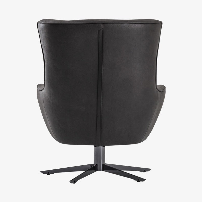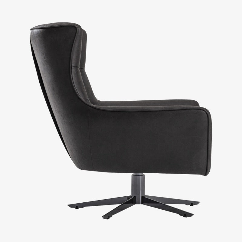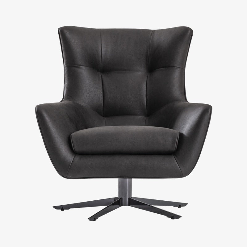 Sink into the luxurious comfort of the Manchester leather chair. Upholstered in the finest top-grain leather, this stylish yet cozy chair envelops you in a warm embrace. With its 360-degree swivel base and padded armrests, the Manchester invites you to unwind in any direction. Whether you’re cozying up with a book or enjoying movie night with friends, its plush cushions and high back provide support for hours of relaxation. Designed to make a statement in your living room, this leather chair combines old-world craftsmanship with contemporary contours for a look that transcends trends. When it comes to comfort, the Manchester chair revolves around you.