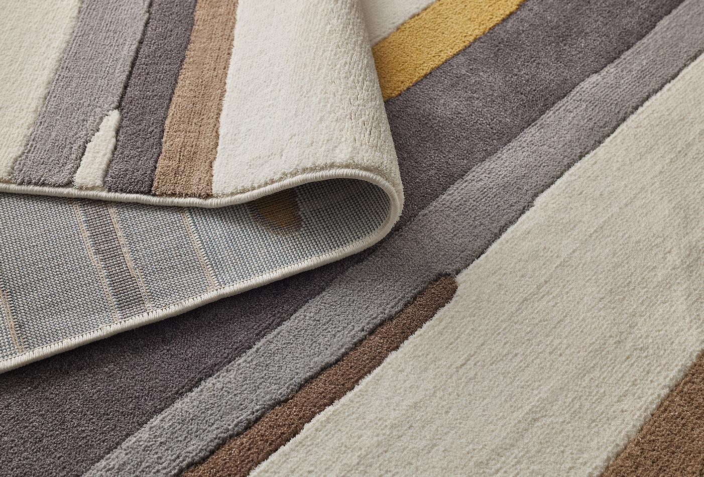 The Lara Carpet turns simplicity into statement. With flowing strokes of taupe, grey, and ochre across a soft ivory base, it feels like a painting brought to life — abstract yet deeply grounding.