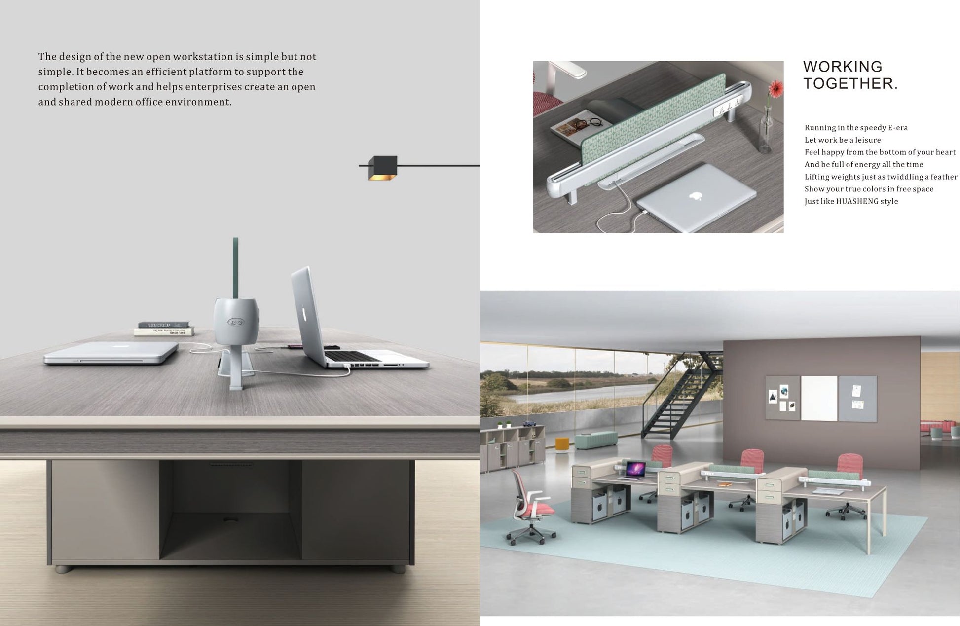 Each station comes equipped with built-in power access, organized storage, and ergonomic spacing — ideal for co-working offices, startups, and creative studios. The mix of practicality and elegance makes it a favorite for dynamic teams that think, build, and grow together.