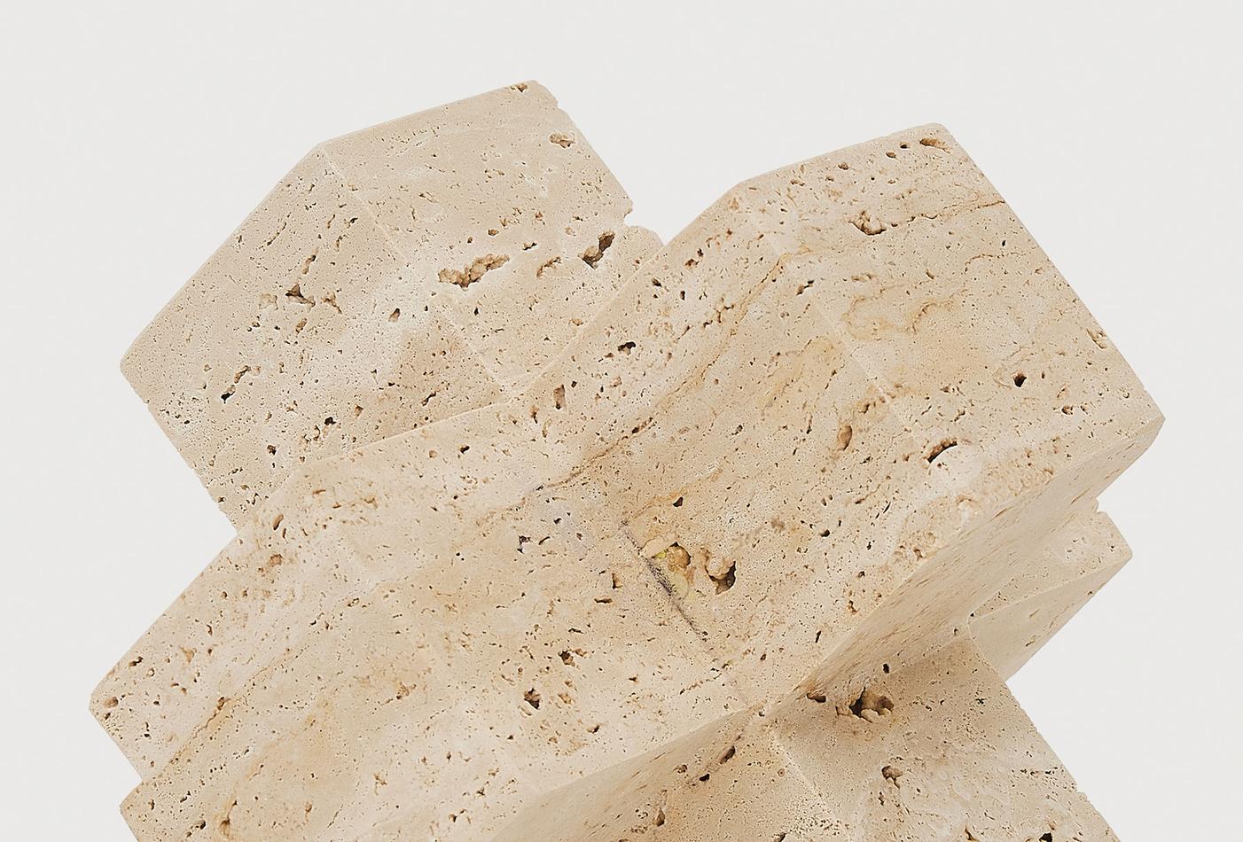 At once structured and raw, Axis brings together the precision of modern sculpture with the softness of natural material. The porous texture of travertine contrasts beautifully with its sharp geometry, creating depth and tactility that invite touch and contemplation.