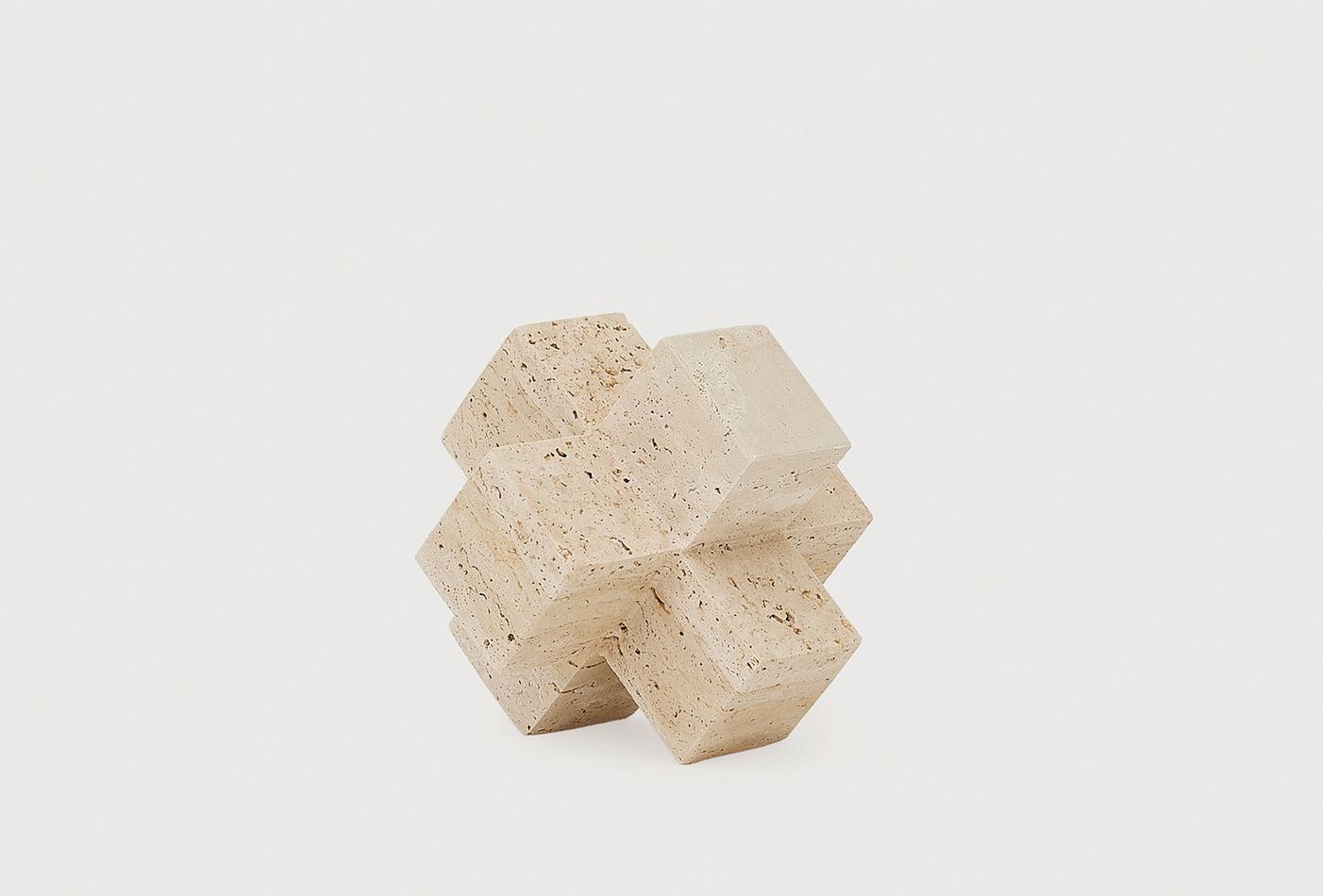 Display the Axis Sculpture on a marble coffee table, wood console, or open shelving to bring architectural depth into your space. For a layered look, pair it with other stone or brass decor accents — think travertine vases, sculptural bowls, or monochrome books — to create a curated, gallery-like atmosphere.