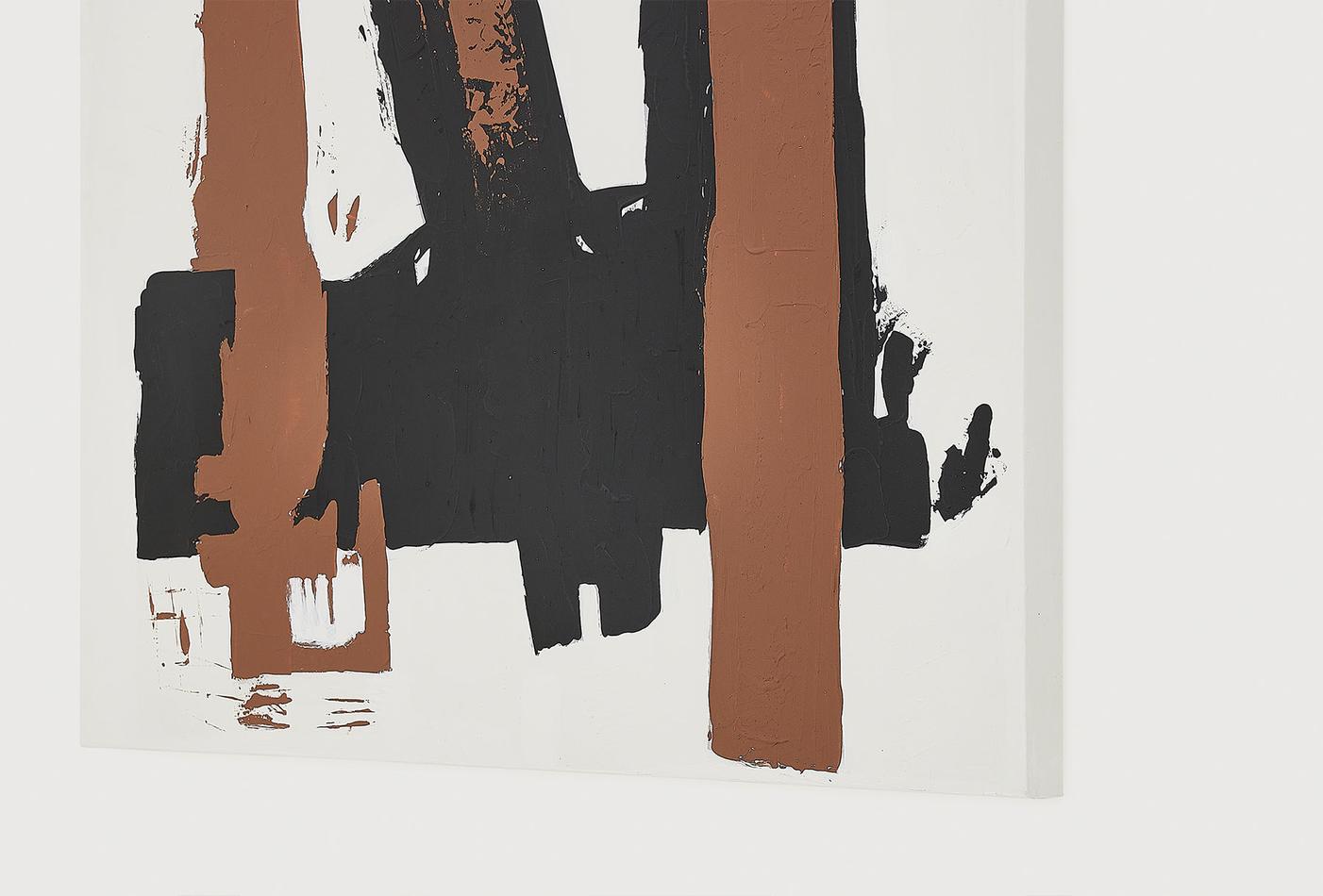 The Chairo Painting captures the language of structure and spontaneity — where brushstrokes become architecture, and texture becomes emotion. Handcrafted with a rich interplay of charcoal black and terracotta tones, this abstract piece embodies both warmth and restraint, echoing the timeless beauty of raw materials and deliberate design.
